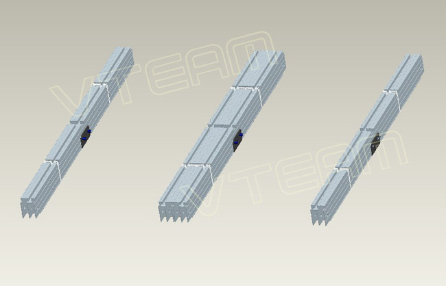 屏和屏之间的连接安装用导轨完成,导轨有两种规格,500mm长和1000mm长的。为了实现大屏幕,还需要将导轨拼装。下面以500mm的导轨拼装为例,以图例示意大屏的拼装: