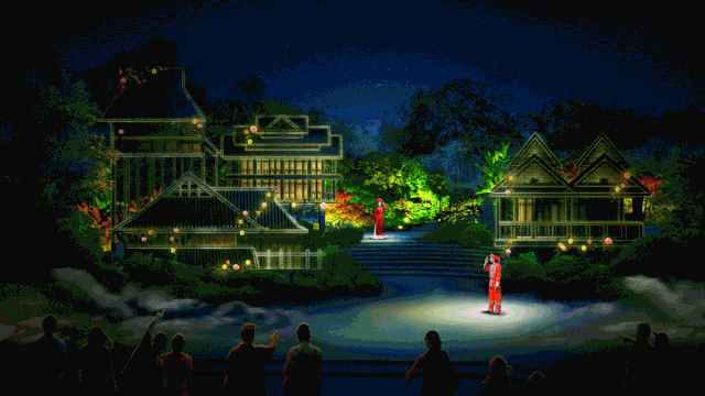 利亚德打破了传统城市亮化的工程设计,通过多媒体声光电、实时交互、AR/VR、全息、智慧5G、转直播平台等前沿科技,打造“城市智慧夜游”创新数字平台,打通线上线下,线下沉浸式互动体验营销传播模式,让夜景+游客融为一体,虚拟与现实完美结合,增强景区旅游的故事性、互动性、游戏性效果。
