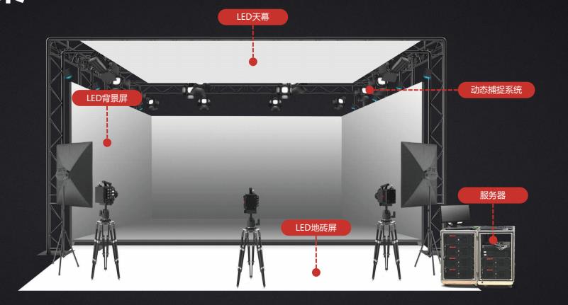 利亚德的LED显示屏的XR 解决方案是高度定制的系统,针对每种应用进行设计和测试。 解决方案的物理结构包括硬件组件和一套软件和服务,用于 3D 模拟、空间定位和跟踪、多通道 3D 缝合系统和实时基于物理的渲染 (PBR),以及定制的 3D 模型和 内容开发。