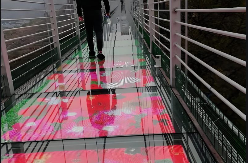 随着旅游产业的蓬勃发展,景区之间的竞争已从自然景观延伸至技术创新体验。近年来,玻璃栈道因其惊险刺激的特性成为众多景区的“标配”设施,而其中LED显示屏技术的融合应用,更将这一体验推向新高度。通过透明显示、雷达感应与音效系统的整合,玻璃栈道从单纯的观景平台转型为沉浸式互动体验空间,不仅极大提升游客参与感,也为景区运营开辟了全新商业模式。
